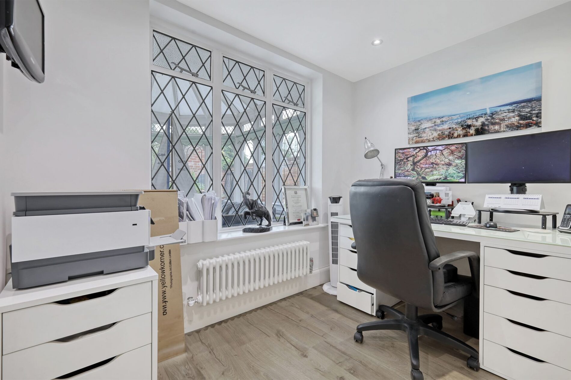 The rear gardens are substantial, well-kept, and are ideal for the family and entertaining. Commencing with a paved patio, steps descend to the lawn where there is a gated access to the basement area. There is a garden pond, further patio area, and a brick-built bar as you walk through the garden to the beautiful lake at the rear. Here, is another waterside patio where you can sit and relax watching the natural wildlife on the lake in a very peaceful setting that only a handful of properties have the benefit of enjoying.