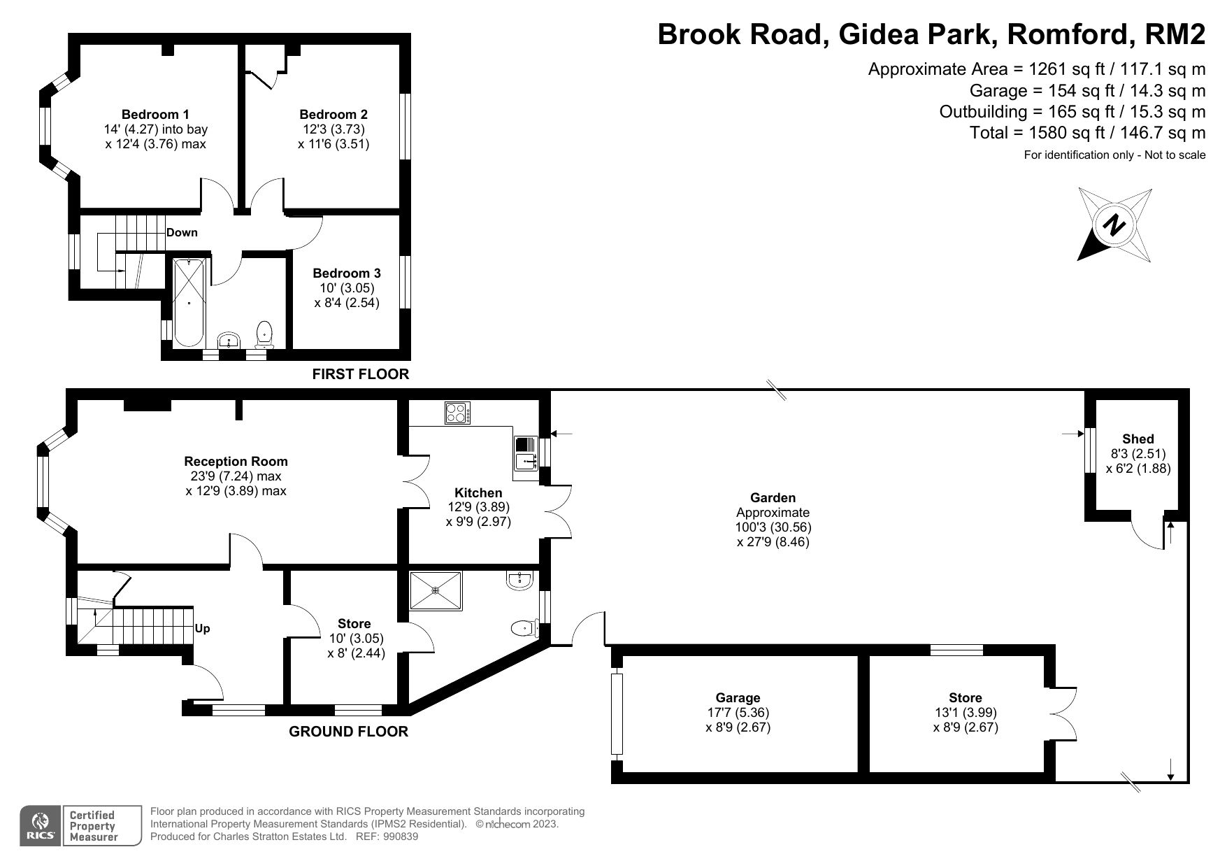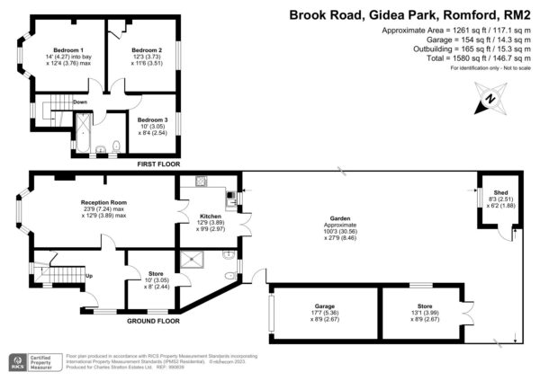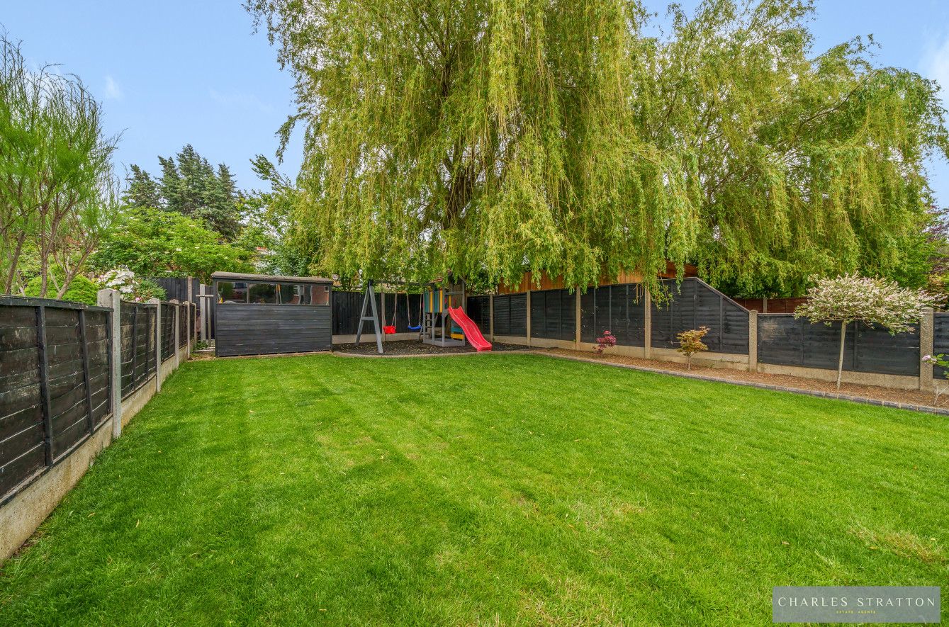 Rear gardens commence with a generous patio area laid to mainly lawned gardens of approximately 100' with mature shrub borders, play area and shed to the rear, and a garage with a separate store.