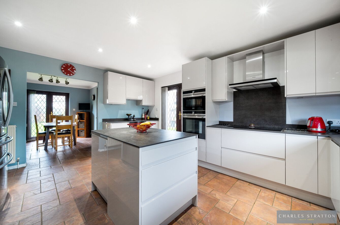 The property is approached through well-maintained gardens leading to an Entrance Porch with doors opening to the ground floor accommodation comprising Four Reception Rooms, large Kitchen with central island fitted with modern high gloss units, and Cloakroom W.C.