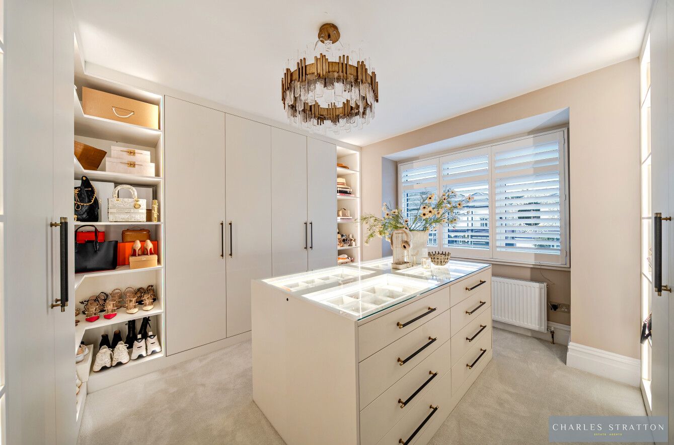 To the first floor there are Three Well Proportioned Bedrooms all with fitted bedroom furniture, and a Five Piece Bathroom Suite. The Master Bedroom is on the second floor which is another impressive room thoughtfully designed with an extensive range of bedroom furniture and backlit display shelving through which you will find a well-appointed En-Suite Shower Room. A pair of glazed doors open to a glazed Juliette Balcony to provide uninterrupted views of Raphaels Park Lake and Fountain with the backdrop of the Established 44-acre Park beyond.