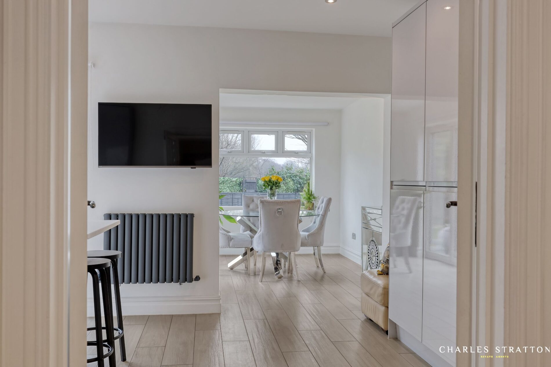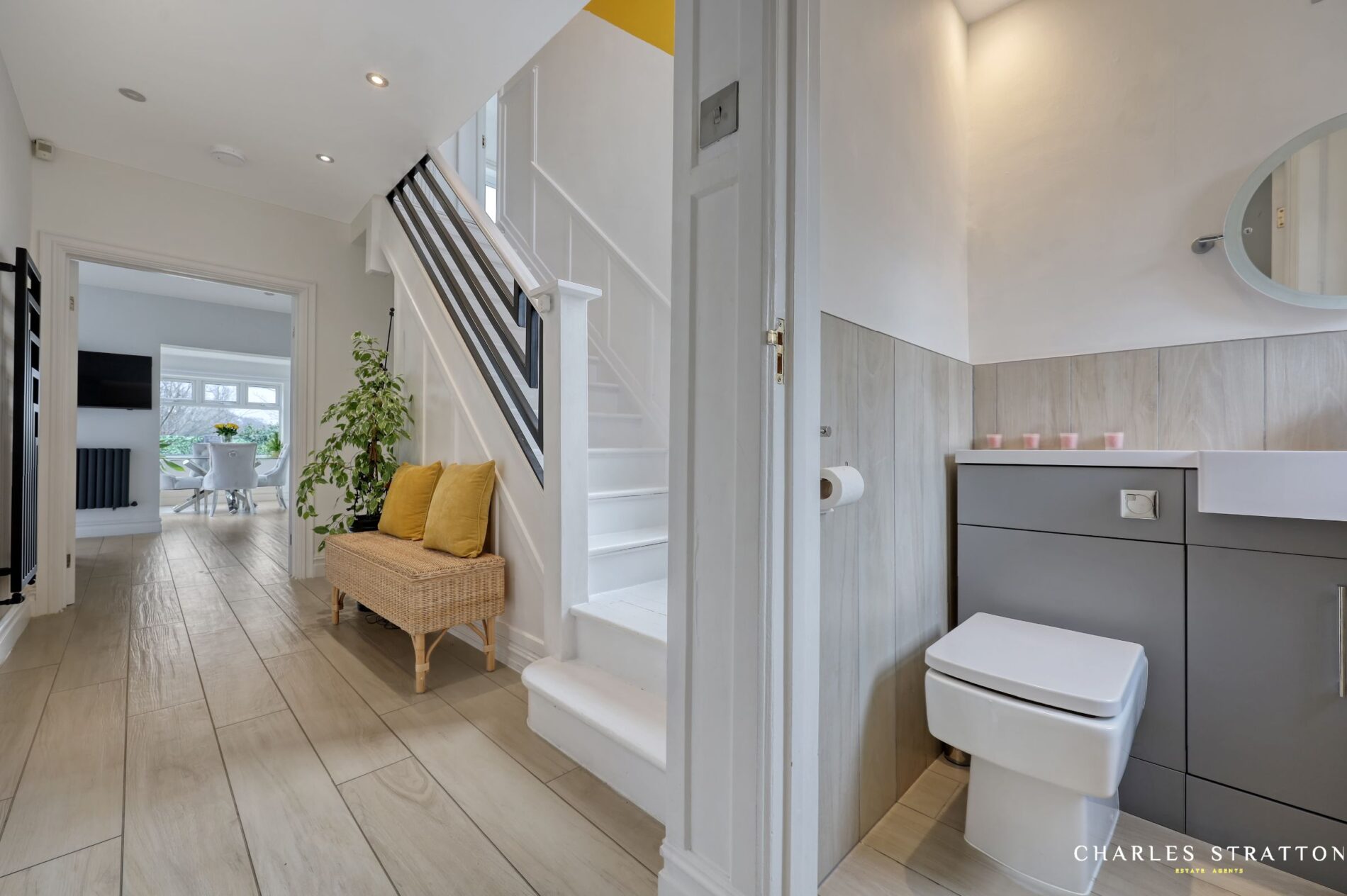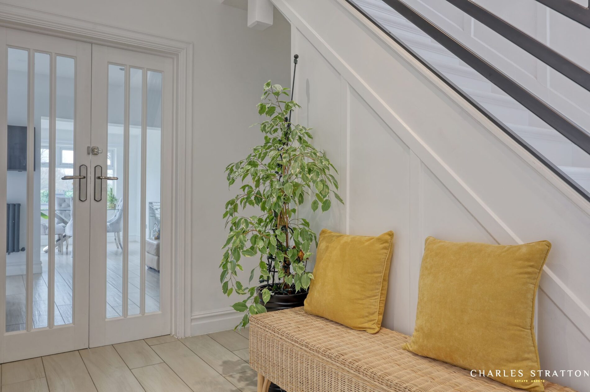 The high street is within walking distance providing a good selection of shops, bars, and restaurants. Larger supermarkets and shopping facilities can be found at Gallows Corner and Romford Town Centre, whilst Gidea Park Railway Station less than a mile away now has the full benefit of the Crossrail Elizabeth Line.