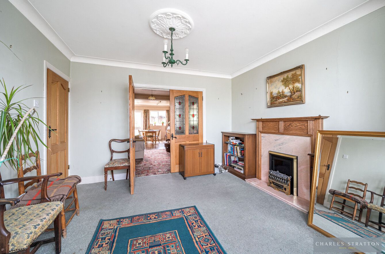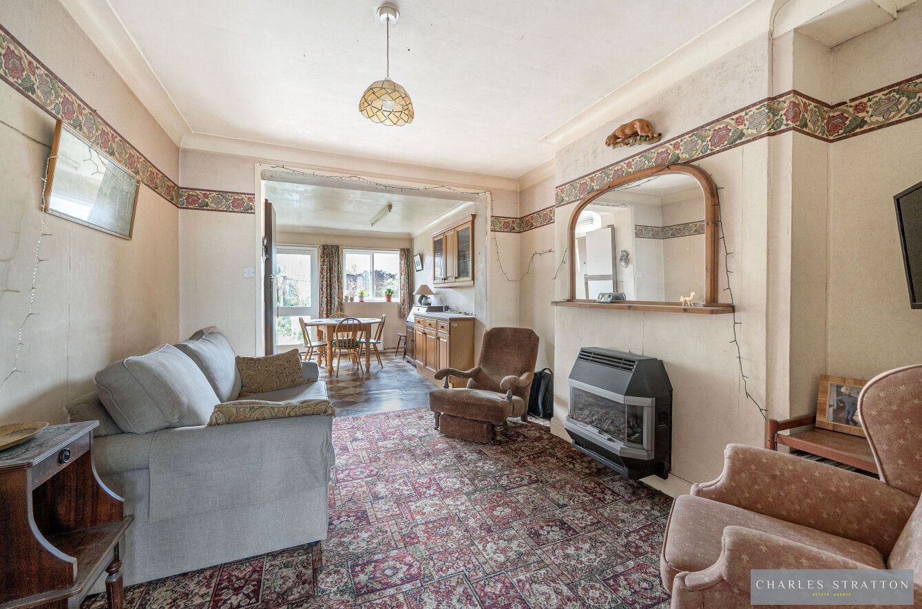 The property is approached by a large front garden with hardstanding offering generous Off-Street Parking with the further benefit of a shared driveway leading to a garage at the rear of the property.