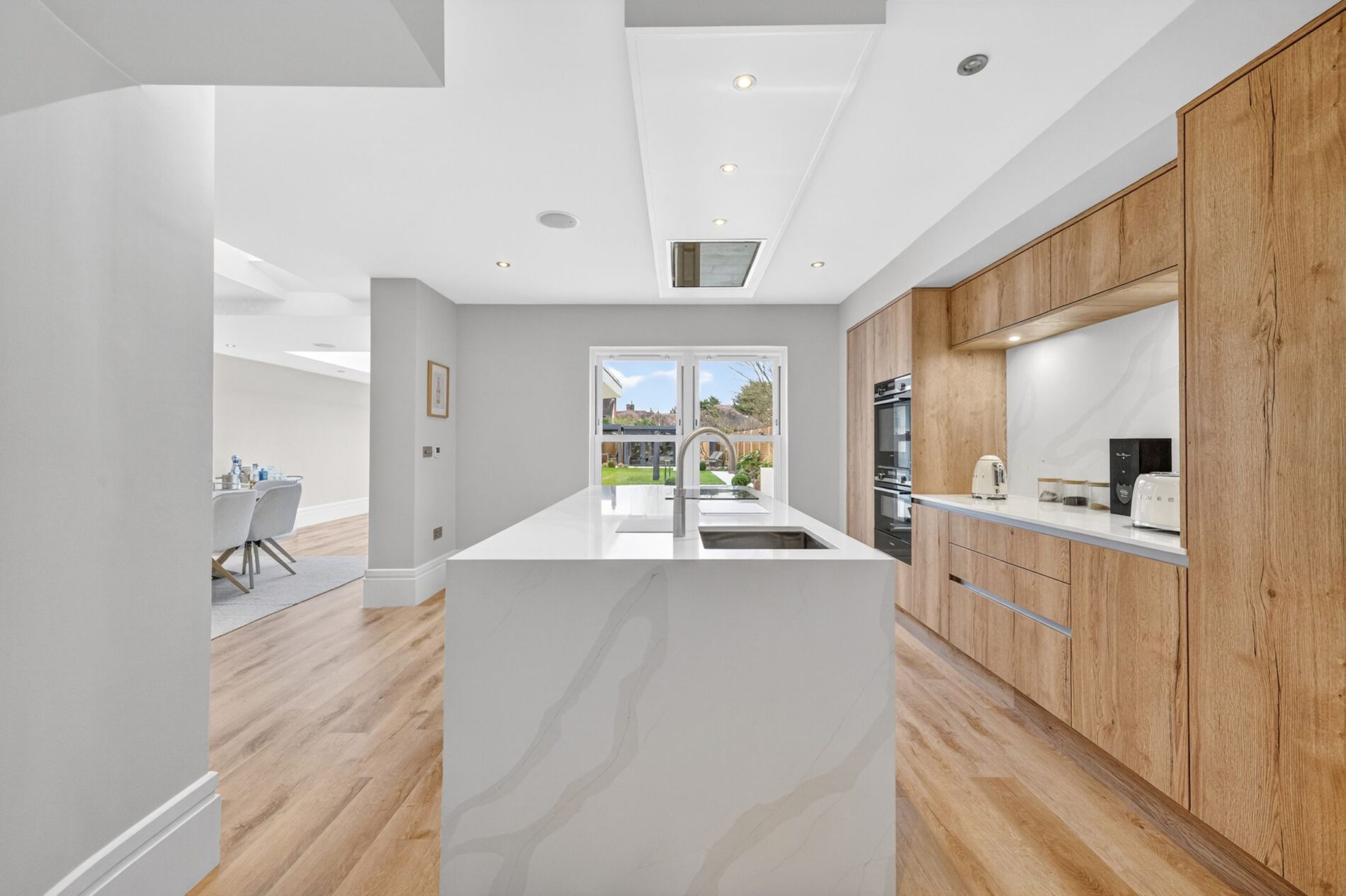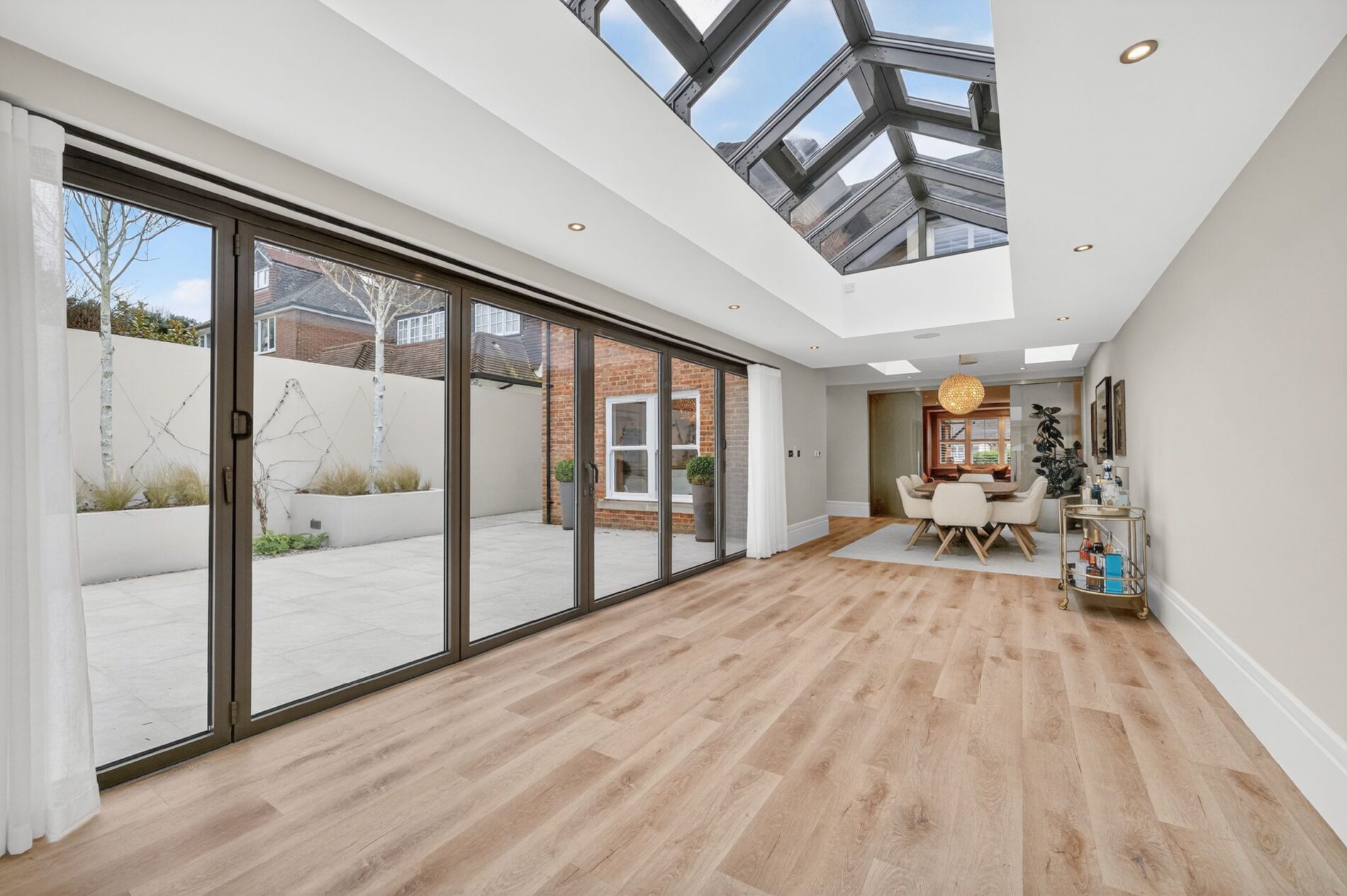 To the rear there are meticulously kept gardens having been landscaped by Essex Garden Design to include a Wi-Fi controlled irrigation system, Pergola with a heater, and a Garden Room fitted with power and lighting, heating, and hardwired Wi-Fi.