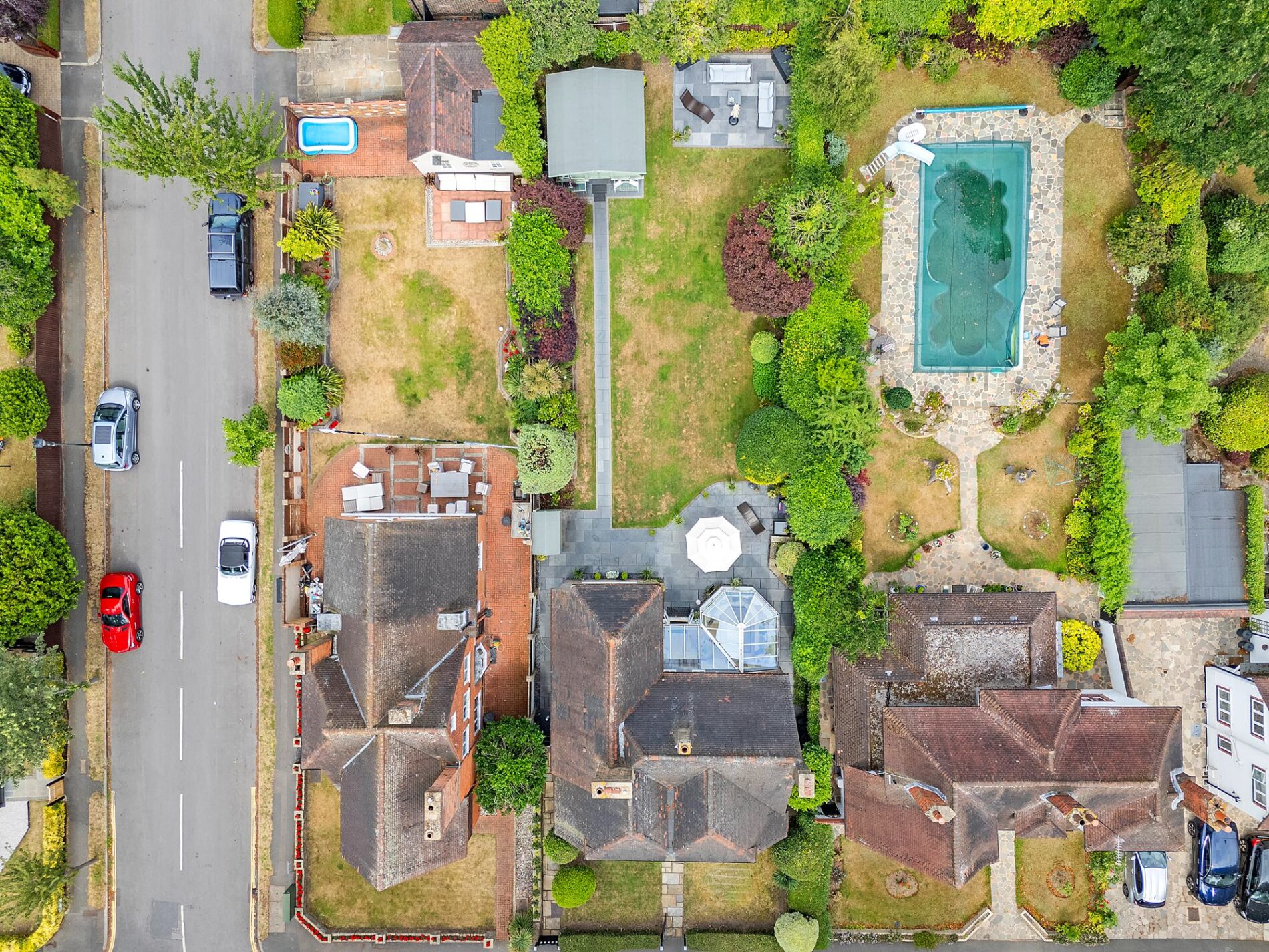 The rear gardens have been meticulously maintained and are ideal for a family or those who like to entertain. Commencing with a large Sun Terrace, a pathway leads mainly lawned gardens to the rear, where there is a large Summer House with power and lighting, and a further paved seating area. The rear of the property enjoys an unoverlooked position backing onto the gardens of Meadway.
