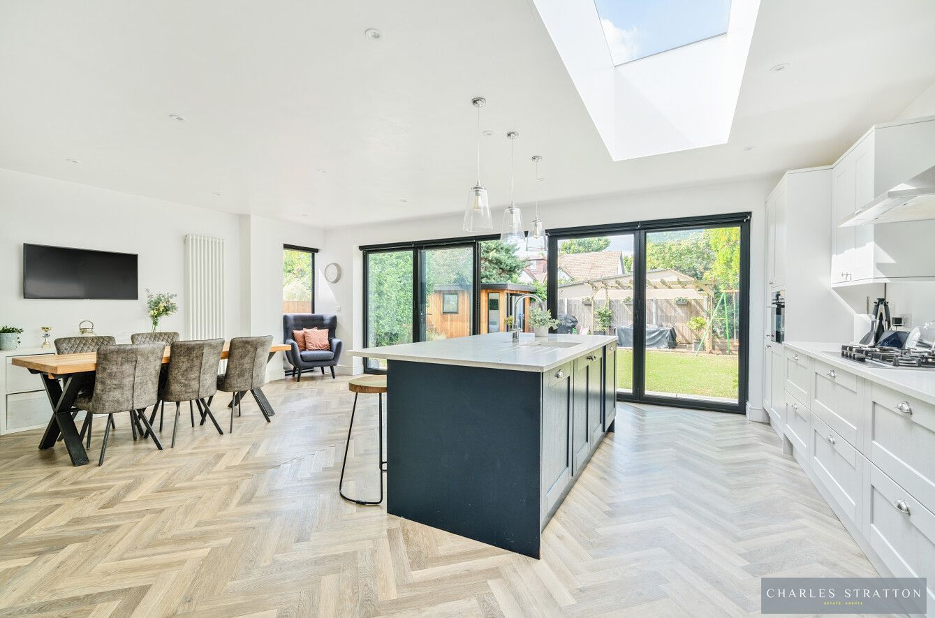 This property enjoys a corner plot position with a carriage style driveway and has been extended to provide spacious living accommodation. One of many fine features to this property is the substantial Kitchen/Family Room designed for today's modern living measuring an impressive 23'10 x 18'11 which includes a kitchen island and bi-folding doors opening the room to the rear garden. There are two further Reception Rooms, Office, Utility, and Cloakroom W.C. completing the ground floor accommodation.